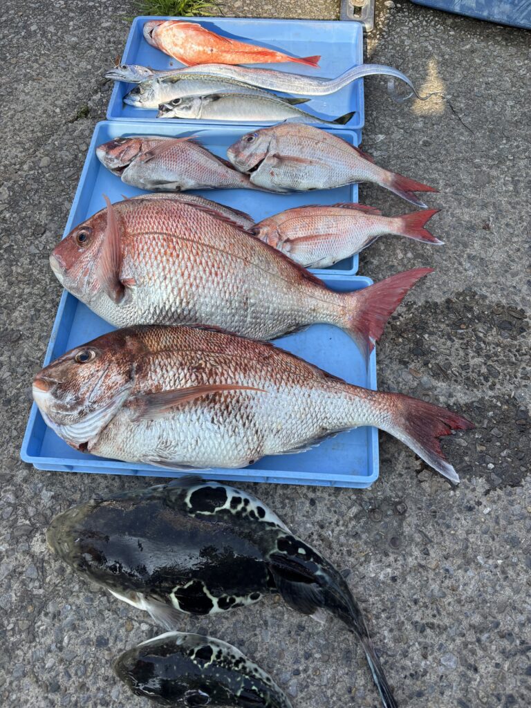 サワラの様子も常時入って来ますが、良い情報なく皆さんに確認したところ、このままマダイを狙いたいとの事で続行し、またしても🔰の方にヒットして1,6キロ2枚目と続いてくれました( ◠‿◠ )